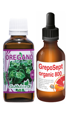 SILNÁ DVOJKA v zložení prírodných produktov Oreganový olej 1ks + Grapefruitový extrakt BIO 1ks • Produktový balík určený na očistu organizmu pri premnožení BAKTÉRIÍ a VÍRUSOV.