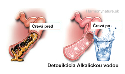 Preto má čistenie čriev veľmi dôležité opodstatnenie pre organizmus. Počas prvých dní pitia alkalickej vody sa môže dostaviť častejšie vyprázdňovanie čriev, príp. sa môžu objaviť vyrážky, či iné prejavy na pokožke. Tzn., že alkalická voda účinkuje - vylučuje sa obrovské množstvo jedovatých látok a telo sa ich snaží odstrániť všetkými dostupnými cestami. Očista organizmu s alkalickou vodou vytvára dobré podmienky pre detoxikáciu tela - neutralizáciu a odstránenie toxických a hlienových odpadov.