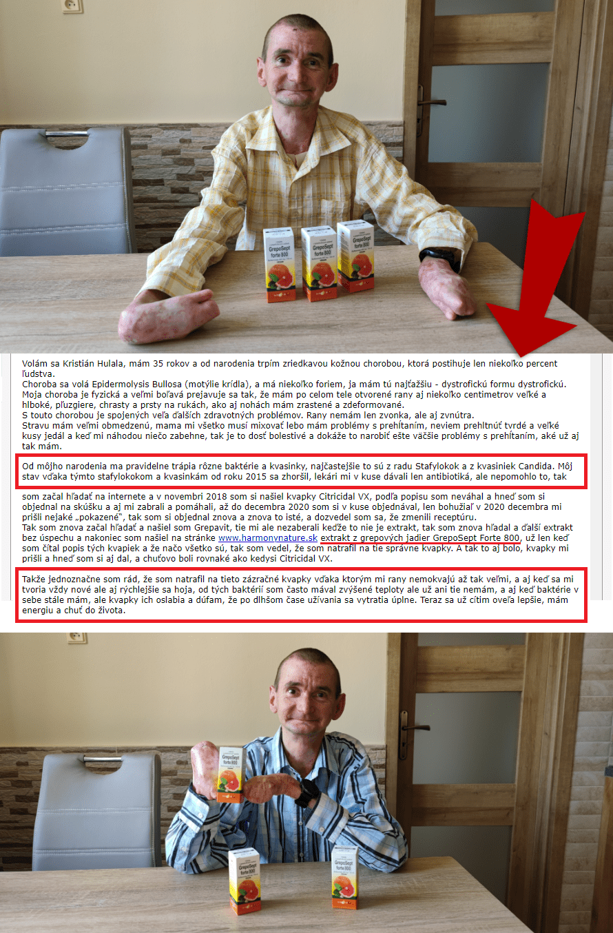 Kristián to nevzdal a napriek svojmu neľahkému osudu hľadal riešenie medzi prírodnými doplnkami a problém s baktériami sa mu podarilo dostať pod lepšiu kontrolu s prípravkom ›Greposept - Grapefruitový extrakt, ktorý patrí medzi prírodné antimikrobiálne doplnky so širokospektrálnym účinkom. O bonusoch grapefruitového extraktu sa viac dozviete na odkaze: ›Zloženie, pôsobenie, benefity: Grapefruitové jadierko extrakt