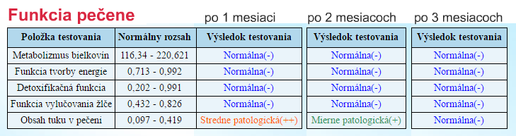 Na obrázkoch nižšie si môžete porovnať výsledky meraní, ako sa každým mesiacom menili funkcie orgánov (k lepšiemu) a napr. hodnoty vitamínov a minerálov, ťažké kovy, kyslosť organizmu a pod. Porovnajte si 1 a 3 mesiac.