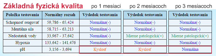 Tieto výsledky meraní sú iba za 3 po sebe nasledujúce mesiace, a tak si určite viete veľmi ľahko predstaviť, ako asi môžu vyzerať merania po 6 mesiacoch, či po 1 roku pitia alkalickej vody :)