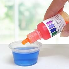 ◘ Pre dosiahnutie najlepších výsledkov pridajte do vzorky vody 2-3 kvapky pH činidla. pH kvapalina hneď bude reagovať s vodou a zmení farbu.