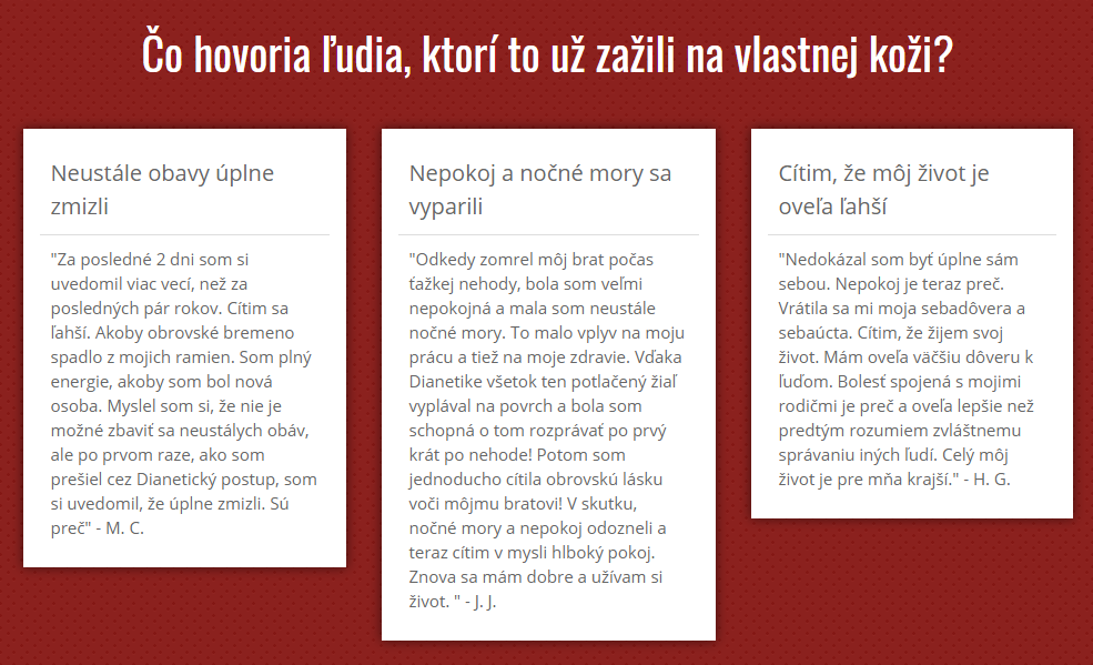 ◘ Pozrite aj Facebookovú stránku so skúsenosťami: ›Milujem knihu DIANETIKA