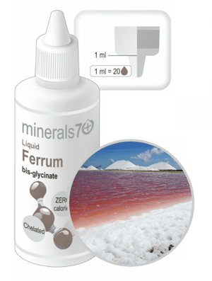 ► Chelátové kvapky Liquid Ferrum 50ml obsahujú viac než 70 minerálov a stopových prvkov, vyskytujúcich sa vo vodách Veľkého soľného jazera (USA), s vysokým obsahom prírodného horčíka. Obsahuje CHELÁT bis-glycinát železnatý, ktorý vyniká vysokou biologickou dostupnosťou a znášanlivosťou a je kvalitným zdrojom železa. Obohatený je o vitamíny B9 a B12.