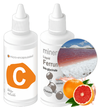 ► Chelátové kvapky Liquid Ferrum 100ml obsahujú viac než 70 minerálov a stopových prvkov, vyskytujúcich sa vo vodách Veľkého soľného jazera (USA), s vysokým obsahom prírodného horčíka. Obsahuje CHELÁT bis-glycinát železnatý, ktorý vyniká vysokou biologickou dostupnosťou a znášanlivosťou a je kvalitným zdrojom železa. Obohatený je o vitamíny B9 a B12.